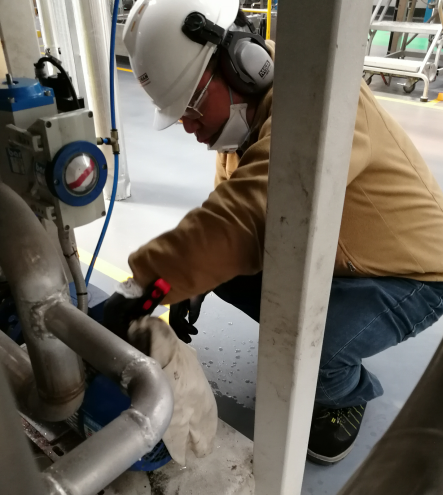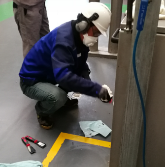14:10清掃活動正式開始,總經理帶隊負責1號離心甩干機,設備經理帶隊負責2號離心甩干機,生產經理帶隊負責3號離心甩干機。開始前生產班組為各機臺安排了一名生產人員作為安全專員,防止在清掃過程中出現安全問題。各個小組在組長帶領下,拿起抹布、拖把、掃把,進行設備的清掃活動。