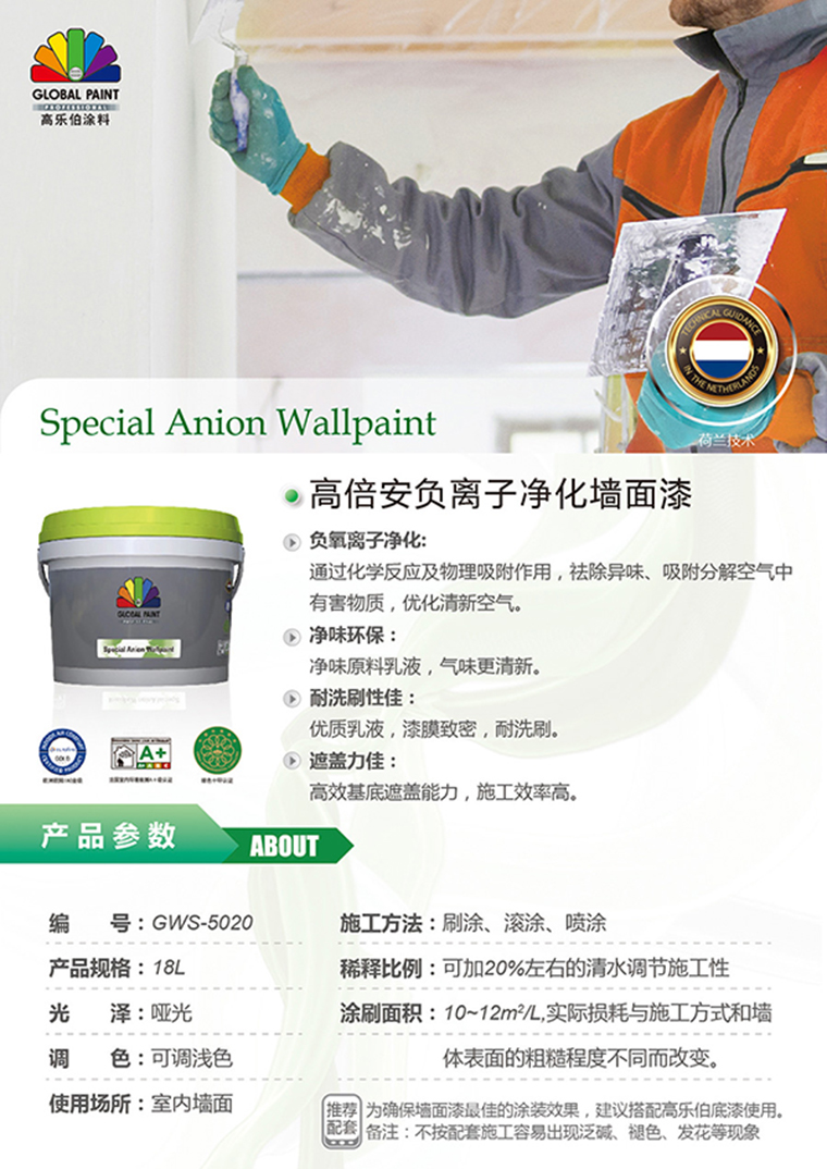 荷蘭高樂伯涂料秉承歐洲企業“專業、環保”的理念,在荷蘭技術支持下,開發具負離子功能的墻面漆,通過物理吸附、凈化作用,能減少裝修污染帶來的危害,為家人打造更健康宜居的環境。
