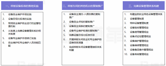 回顧TPM管理推進(jìn)過程,博革咨詢有一套完善的推進(jìn)方式,每個(gè)項(xiàng)目初期都會(huì)建立項(xiàng)目管理制度,搭建推進(jìn)TPM的組織架構(gòu),以行之有效的辦法激勵(lì)員工積極參與到項(xiàng)目中來,同心同力打贏關(guān)鍵設(shè)備攻堅(jiān)戰(zhàn)。