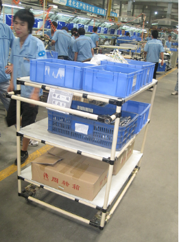 3) 物流工具和工裝的改善,減少了物流搬運次數,減少物流量。