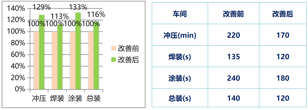 ?   焊裝產能提升后標準時間(TT)為120S,生產效率提升12.5%