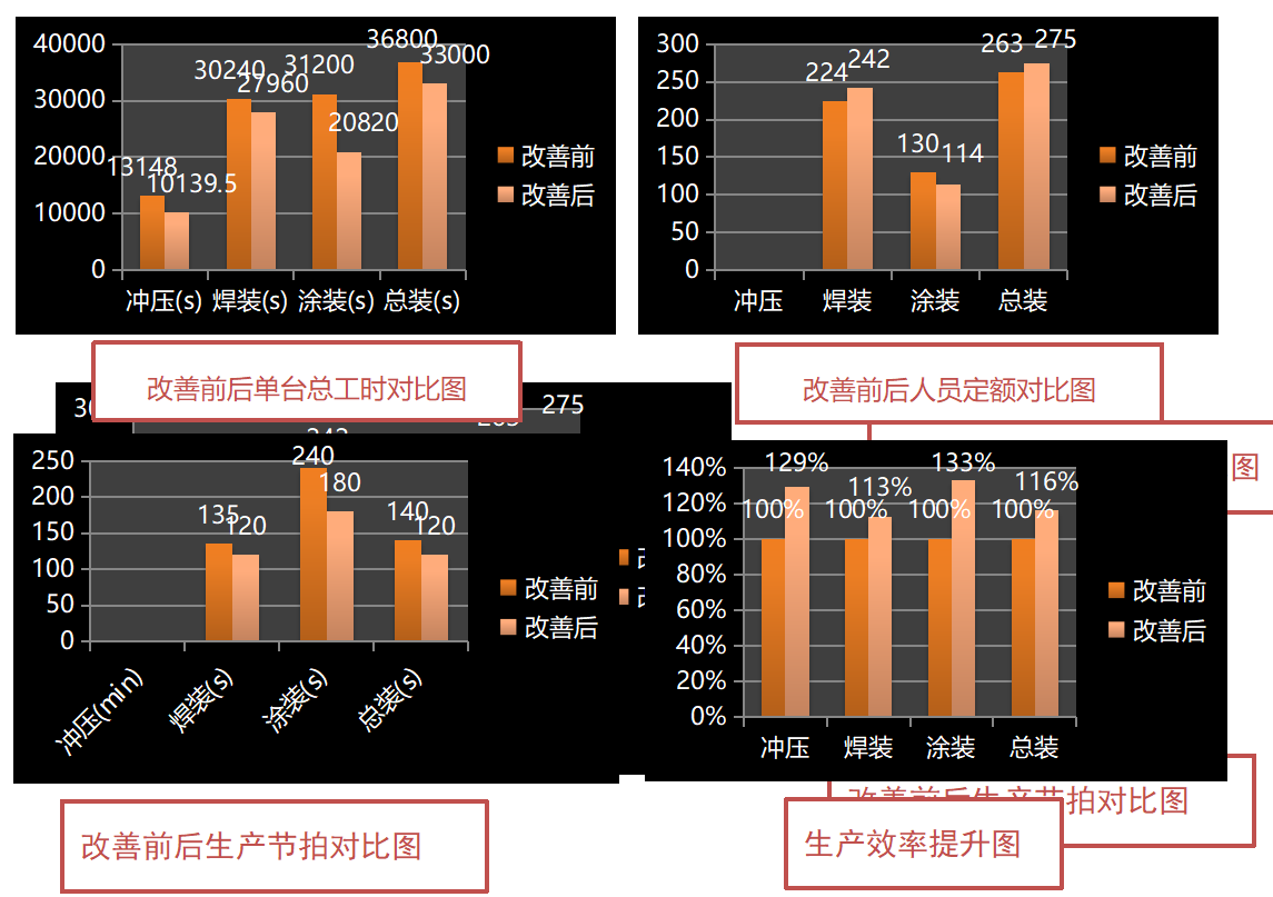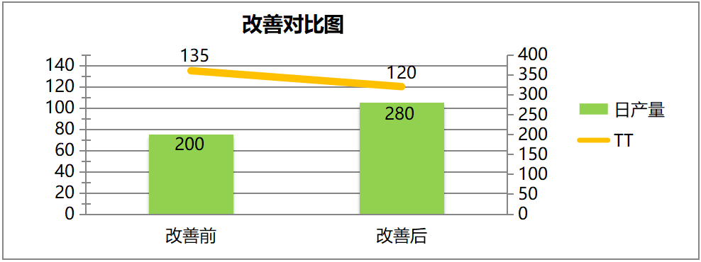 ?   總裝產能提升后標準時間(TT)為120S,生產效率提升16.6%