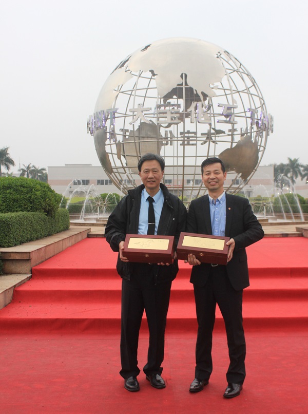 大寶國(guó)際董事長(zhǎng)陳賀生與臺(tái)灣歐德家具集團(tuán)董事長(zhǎng)陳國(guó)都(右)