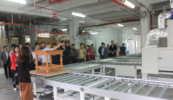 在大寶國(guó)際陳賀生董事長(zhǎng)的陪同下,陳國(guó)都董事長(zhǎng)等一行分別對(duì)東莞大寶化工安管中心、智能涂裝線、后花園、色板中心、國(guó)內(nèi)市場(chǎng)展廳等進(jìn)行細(xì)致的參觀,陳賀生董事長(zhǎng)為大家講解廠區(qū)各部分規(guī)劃的同時(shí),還與陳國(guó)都董事長(zhǎng)就產(chǎn)品開發(fā)、市場(chǎng)開拓等領(lǐng)域問題進(jìn)行親切的溝通交流。