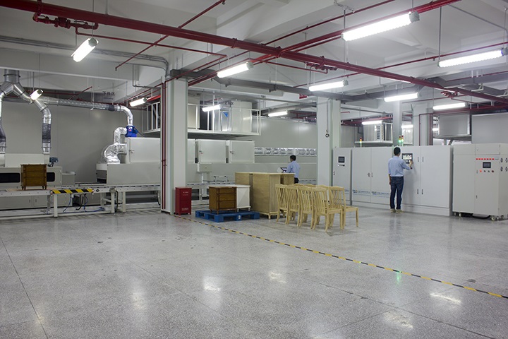 在國家與日俱增的環(huán)保政策要求之下,家具企業(yè)紛紛把“油改水”計劃提上了日程,眾所周知,油改水發(fā)展最大的瓶頸則在于水性涂料的干燥問題。有鑒于此,大寶漆特聯(lián)合中國科學(xué)院電子計算研究所,同時與設(shè)備供應(yīng)廠商合作,采用前瞻技術(shù),歷時近3年,經(jīng)過反復(fù)的溝通、協(xié)調(diào)及試驗,以解決水性家具漆自動化生產(chǎn)所面臨的重要問題為突破,共同研發(fā)了擁有專利技術(shù)的全方位立體干燥設(shè)備系統(tǒng),并率先打造了我國涂料界首家大規(guī)模的智能化涂裝測試線。
