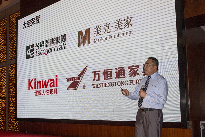 隨后大寶漆工程部培訓(xùn)中心校長黃文敏向大會作主題為“大寶漆智能涂裝運營”的演講。黃校長在詳細介紹大寶漆智能涂裝測試線功能特點的同時,重點結(jié)合大寶水性木器漆產(chǎn)品特點講述了產(chǎn)品與涂裝設(shè)備間的配合關(guān)系,兩者相輔相成將會為家具行業(yè)“油改水”之需求作出生產(chǎn)變革。此外,演講還針對水性家具漆普遍存在的木材漲筋、浮色、干燥慢等六大重點、難點問題,分別給出了可靠而實用的解決方案,受到家具廠老板的高度關(guān)注。