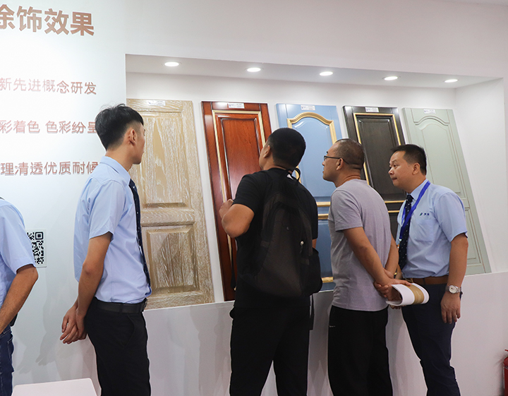 展會中,大寶漆展示“水性單組份”、“水性雙組份”、“UV涂裝”、“科技木皮涂裝”、“櫥柜涂飾效果”和“水性工業(yè)漆”等大型展示色板,其中,大寶水性涂料的色板色澤豐滿度、高抗刮、耐黃變等性能吸引了許多客戶的眼球,紛紛詢問現(xiàn)場工作人員關(guān)于水性涂料的性能及施工要求,表示出強(qiáng)烈的合作意愿,同時,很多家具廠客戶也提出了產(chǎn)線油改水的想法和需求。