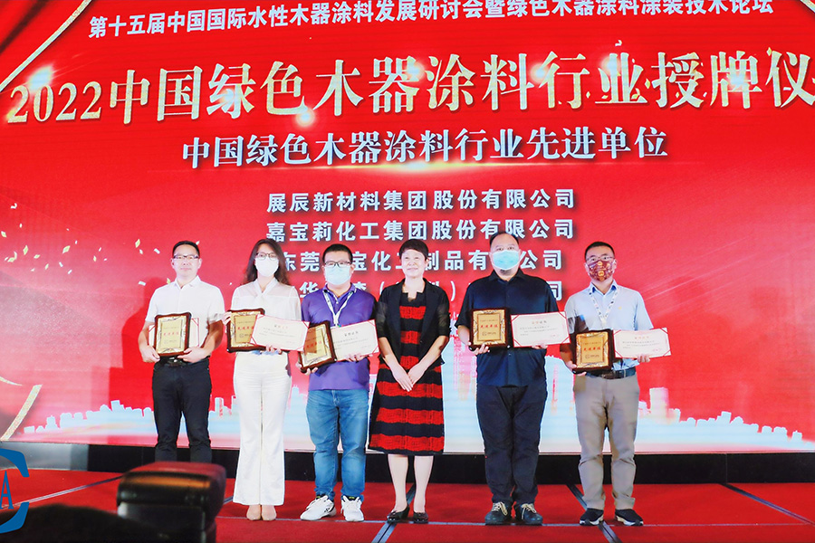 會議中舉行“2022年中國優秀木器涂料涂裝綠色產業鏈協同發展單位授牌儀式”,并對中國綠色木器涂料發展做出突出貢獻的單位及個人進行表彰,東莞大寶化工制品有限公司獲評為“中國綠色木器涂料行業先進單位”,東莞大寶化工廠務/技術部總經理陳春華獲評為“中國綠色木器涂料行業創新推動者”。