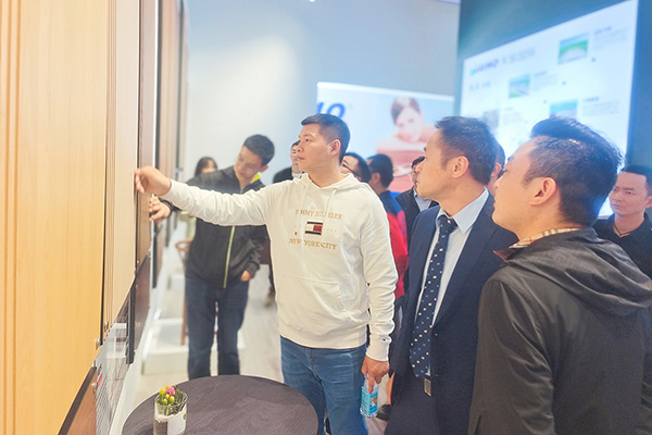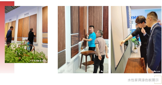 ▲南康區(qū)家具協(xié)會會長參觀大寶漆展館