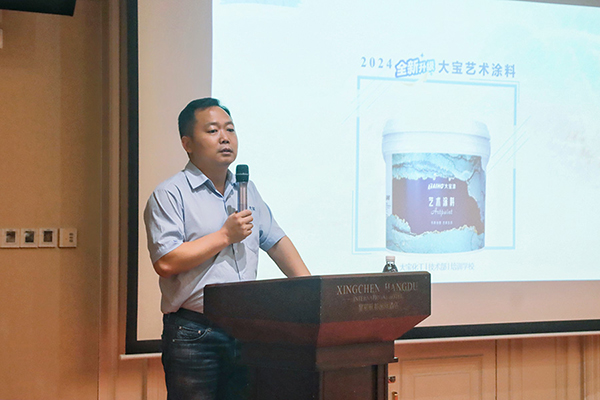 西南區(qū)王總監(jiān)詳細(xì)介紹大寶藝術(shù)涂料施工工藝及效果展示。通過生動的案例和詳細(xì)的演示,與會者對新品的性能和優(yōu)勢有了更深刻的認(rèn)識。