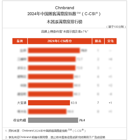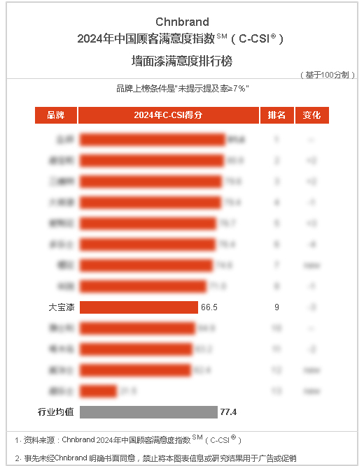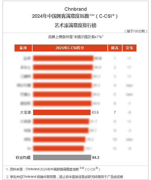 大寶漆再度上榜“墻面漆滿意度排行榜”、“木器漆滿意度排行榜”、“藝術(shù)漆滿意度排行榜”三項(xiàng)榜單,持續(xù)穩(wěn)居行業(yè)顧客滿意度品牌前列,這一非凡成就不僅深刻體現(xiàn)了廣大消費(fèi)者對(duì)大寶漆品牌的高度信賴與認(rèn)可,更彰顯了其在市場(chǎng)中的堅(jiān)實(shí)品牌韌性與卓越品質(zhì)。
