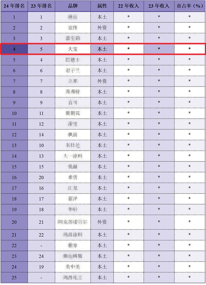10月10日,國內(nèi)權威涂料工業(yè)財經(jīng)媒體《涂界》(Coatings World)發(fā)布了“2024中國家具漆品牌TOP 25”排行榜,匯集了國內(nèi)最具影響力的家具漆品牌。大寶漆憑借卓越的市場表現(xiàn)榮登第4名,較去年上升一位,連續(xù)多年穩(wěn)居家具漆行業(yè)頭部品牌之列,展現(xiàn)了其強大的品牌實力與行業(yè)領導地位。(數(shù)據(jù)來源:https://mp.weixin.qq.com/s/s_wiCGDU7ofTQnuvKh0n2Q)