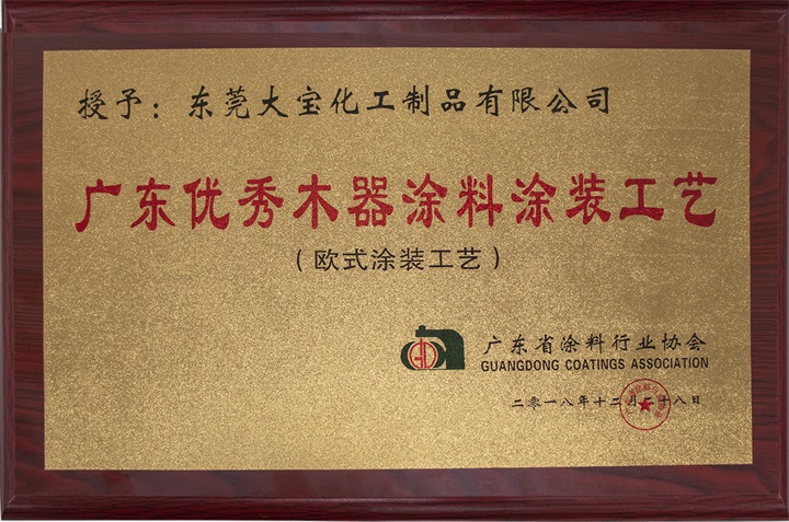 大寶漆歐式涂裝工藝榮獲“廣東優秀木器涂料涂裝工藝”