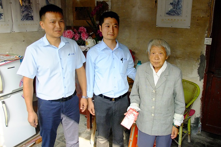 10月17日,農(nóng)歷九月初九,重陽節(jié)。因“九九”與“久久”同音,有長久長壽的含意,所以,重陽節(jié)又是我國的“老人節(jié)”,歷來有推行敬老崇孝的活動。讓“尊老愛老”的中華傳統(tǒng)美德不斷得到傳承、發(fā)揚(yáng)光大,弘揚(yáng)尊老敬老的社會風(fēng)氣,上海大寶化工領(lǐng)導(dǎo)走進(jìn)重固鎮(zhèn)當(dāng)?shù)鼐蠢显?,為老人們送去了?jié)日禮物和慰問金,送去了溫暖,并向他們致以節(jié)日的祝福。