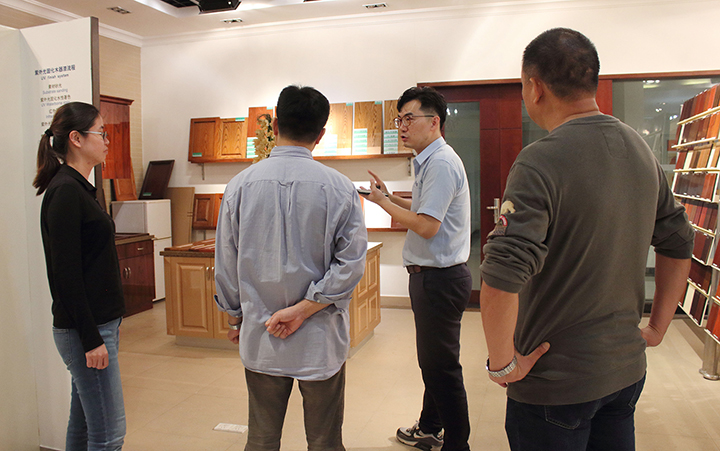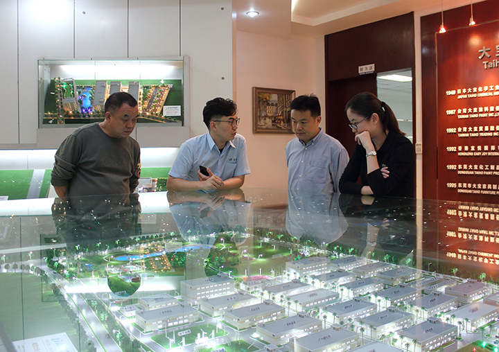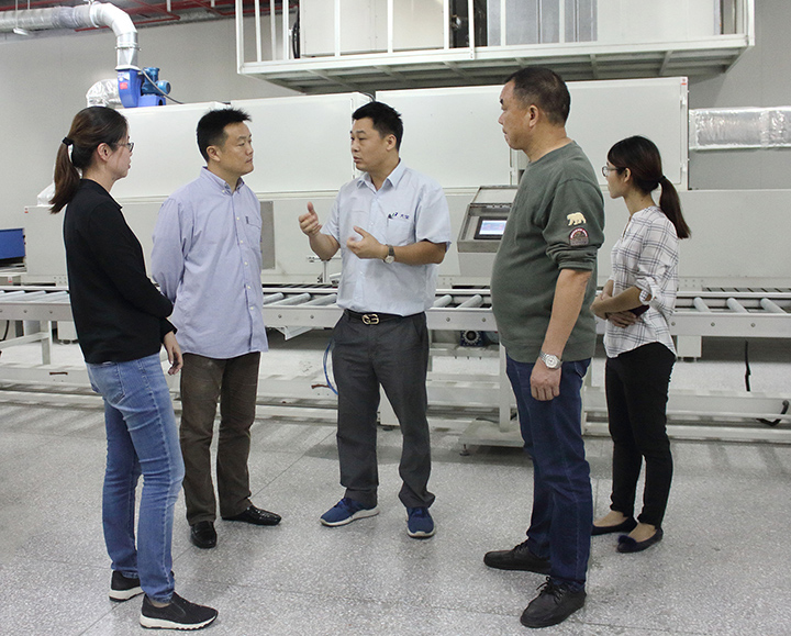 到訪領(lǐng)導(dǎo)一行還參觀了東莞大寶化工現(xiàn)代化的廠房設(shè)備、智能化涂裝線、一流的中央實驗室和展示家具漆產(chǎn)品完美施工效果的色板中心等地,增進(jìn)了彼此的了解和進(jìn)一步合作的信心。針對“油改水”問題,工作人員向參訪人員介紹了大寶漆水性漆的工藝和質(zhì)量控制情況,詳細(xì)回答了馬總、李總一行對智能涂裝線的提問。考察人員對大寶漆先進(jìn)的生產(chǎn)管理和環(huán)保理念給予了高度評價。