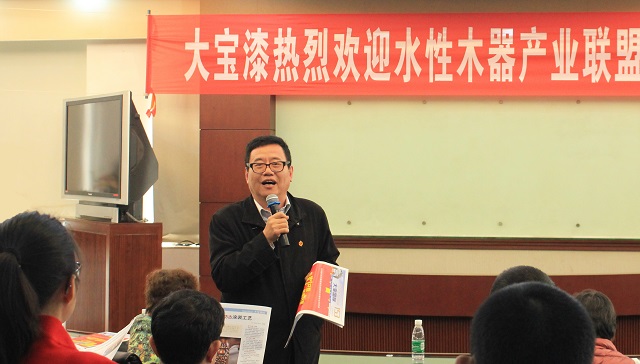 就水性木器涂料發(fā)展方面雙方召開(kāi)了簡(jiǎn)短的座談會(huì)。葉子琛執(zhí)行經(jīng)理代表大寶化工致辭,向到訪人員表示熱烈的歡迎與誠(chéng)摯的問(wèn)候。