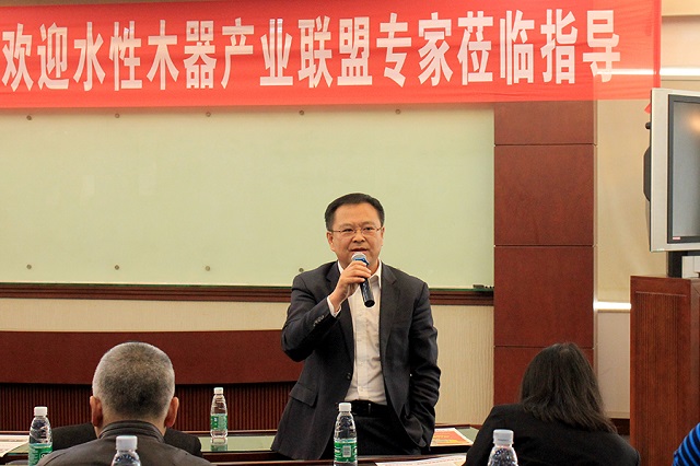 中國(guó)水性木器涂料產(chǎn)業(yè)聯(lián)盟主席楊獻(xiàn)發(fā)言