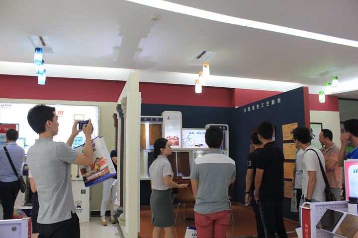 在大寶化工工作人員的陪同下,青家協(xié)一行先后參觀了中央實(shí)驗(yàn)室、4C元素店、智能涂裝測試線、色板中心、后花園和安管中心。在色板中心參觀時(shí),家具企業(yè)家們紛紛慨嘆大寶漆精湛的施工工藝和優(yōu)越的品質(zhì),表示對大寶漆早有耳聞,今日一見,更是加強(qiáng)了與大寶漆合作的意念。