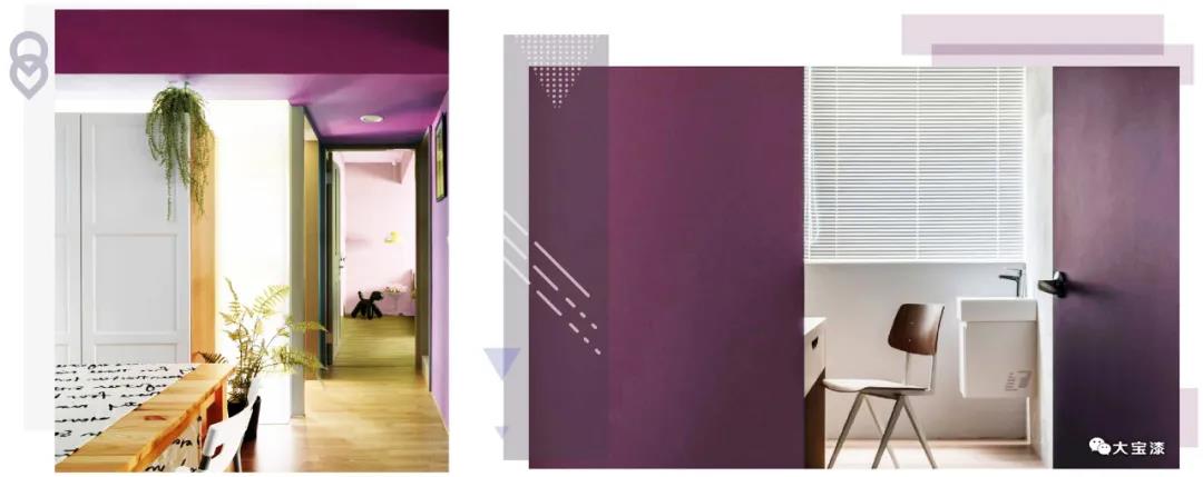 在空間中,大面積使用黑加侖紫其實不大好把控,需要把握好搭配色調(diào)和整體比例。黑加侖紫也可以與灰、木色等搭配,增強空間明亮感,提升家居的活力。