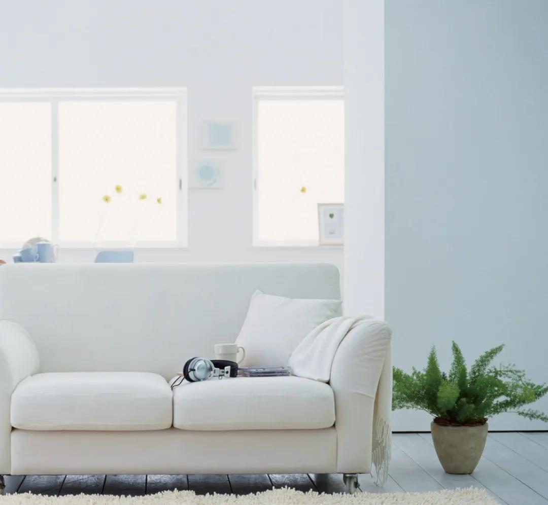 空間整體以天空藍為主打色,在柔和色彩的映襯下搭配白色的布藝沙發,營造出輕柔、唯美、慵懶的居家氛圍。