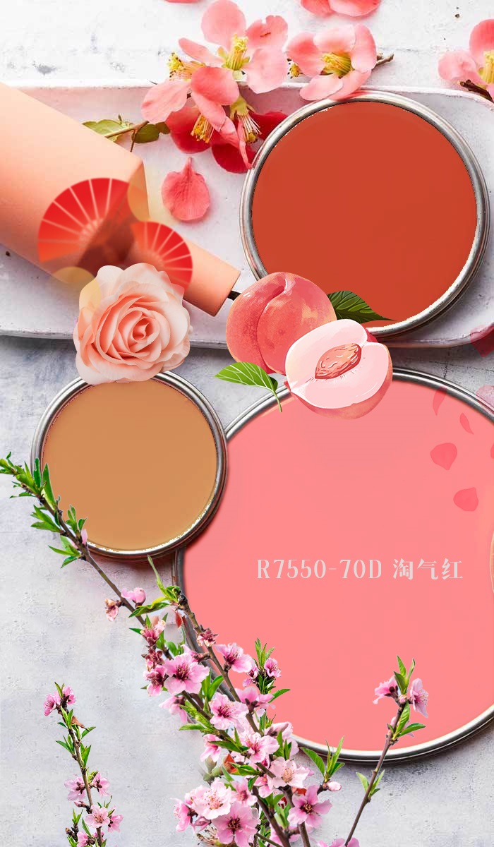 淘氣紅帶著白色的清新并結(jié)合紅色的溫暖,呈現(xiàn)出柔和與亮麗之間的平衡。命名來源于桃的顏色,這不僅是一種視覺上的聯(lián)想,亦是情感上的共鳴。桃子果皮的微微粉紅,讓人想到自然甜美與生機勃勃的春天,而“淘氣”則賦予了這一色彩更多的個性與靈動,既柔和又充滿活力。