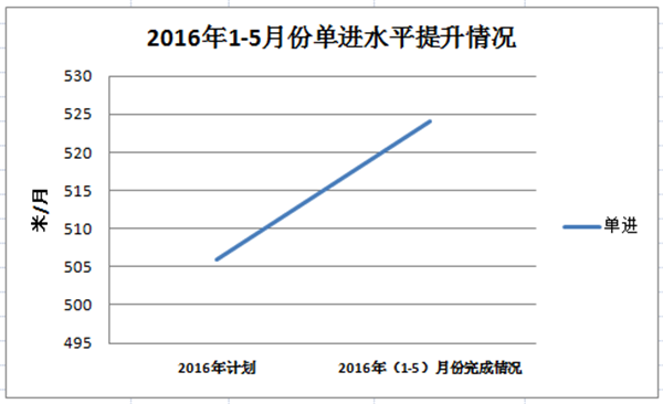 b)單進成果;2016年初單進計劃510.14米/月,2016年1-5月份單進水平524米/月 ,剔除停產影響,1-5月份單進實際完成549.3米/月,較年初計劃提升8.56 %