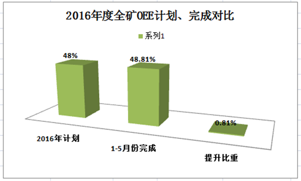 b)OEE:2016年全礦OEE提升計劃48%,2016年1-6月份,全礦OEE完成48.81%(其中綜采45.83%、主運輸51.79%)超年初計劃0.81%